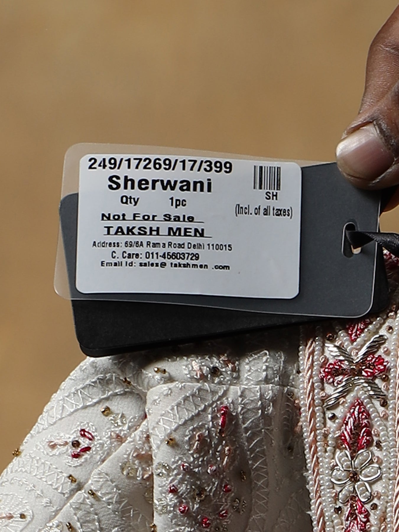 Off white Embroidered Sherwani with Stole